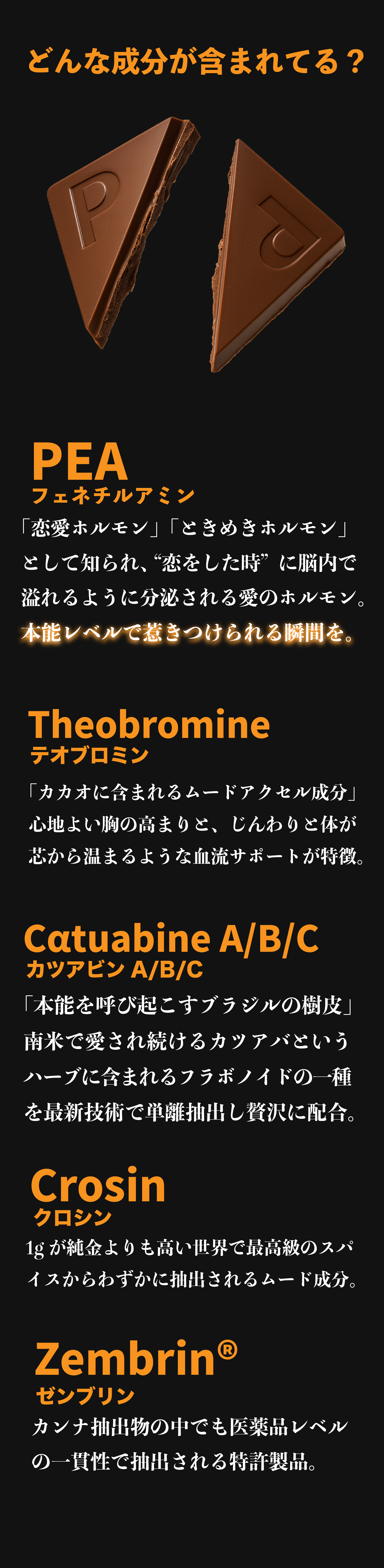 Zembrin、Crocin、PEAなど、世界的に希少で高価なムード成分を贅沢に使用。